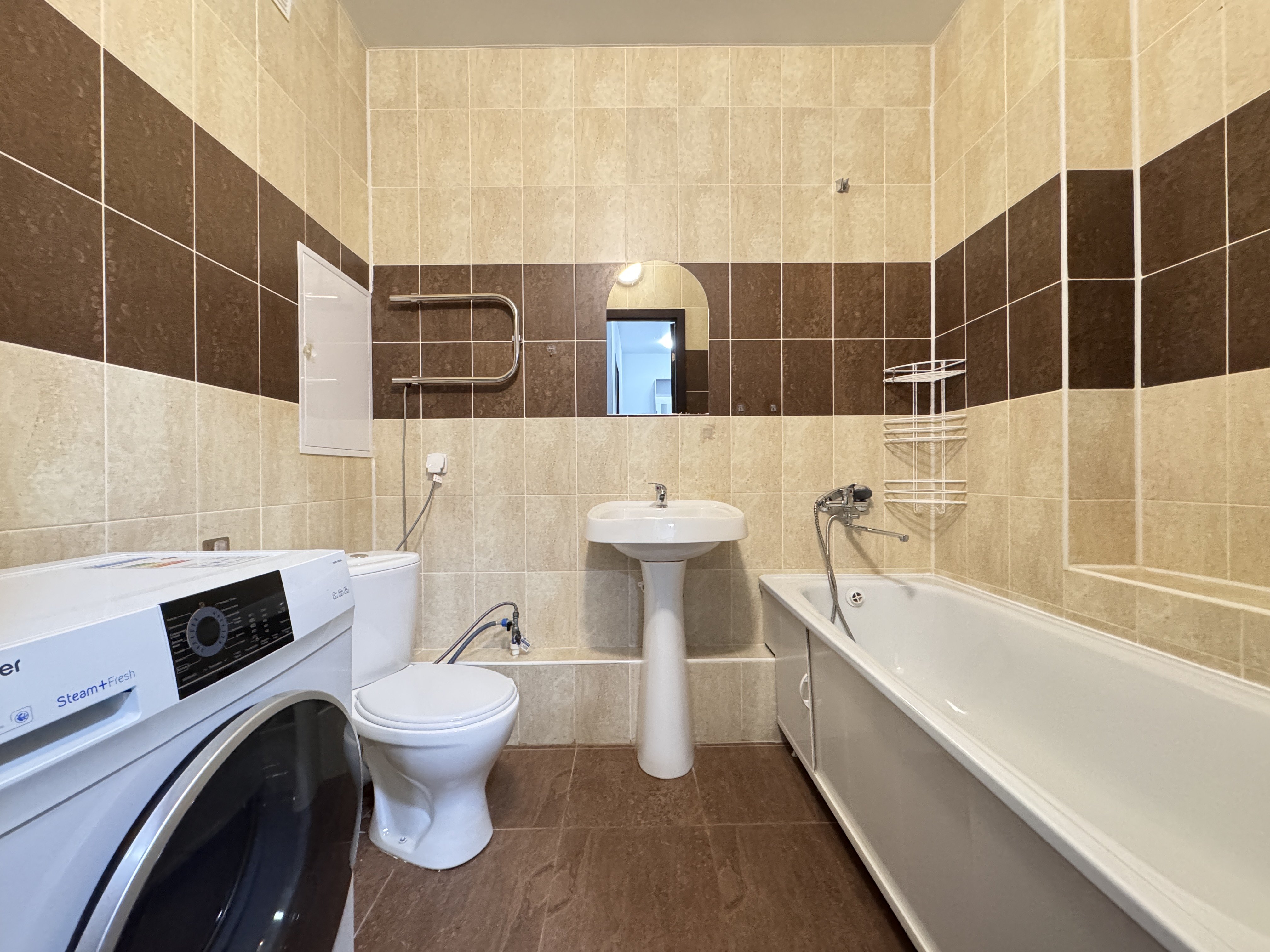 Квартира с качественным ремонтом от застройщика. В стоимость входит вся мебель и техника- можно заехать и жить без дополнительных вложений. Окна выходят во двор. Чистый подъезд, хорошие соседи, ухоженный зеленый двор с детской и спортивной площадками, рядом школа и детский сад.