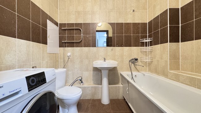 Квартира с качественным ремонтом от застройщика. В стоимость входит вся мебель и техника- можно заехать и жить без дополнительных вложений. Окна выходят во двор. Чистый подъезд, хорошие соседи, ухоженный зеленый двор с детской и спортивной площадками, рядом школа и детский сад.