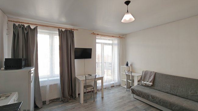 Просторная квартира-студия в Саввино. Уютная квартира, оборудованная всем необходимым для жизни техника (телевизор, варочная панель, холодильник, стиральная машина), мебель для работы и отдыха. Рядом с домом находится шикарный парк c озером для прогулок. В шаговой доступности есть все необходимое для комфортной жизни (сетевые магазины, школа, детский сад, стадион). Так же рядом с домом находится остановка общественного транспорта. До станции Железнодорожная 15 минут на автобусе, либо кто любит прогулки 30 минут пешком. Условие собственника: 1 человек или семейная пара, можно с ребенком, животные по договоренности, оплата + счетчики (свет, вода). Организую показ в день обращения, звоните все расскажу и покажу. Квартира проверена и рекомендована МИЭЛЬ